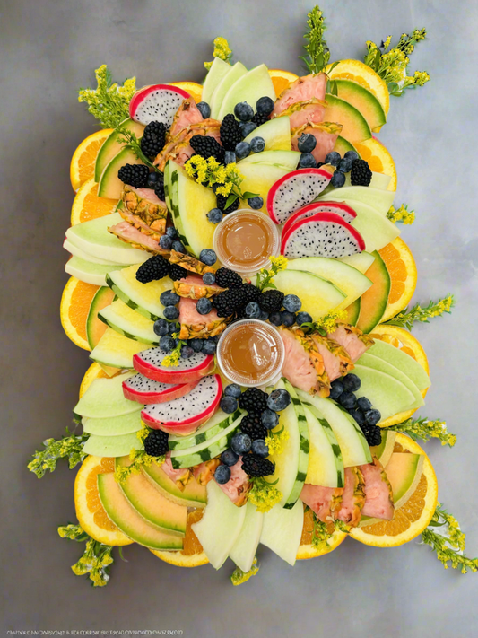 Indulge in nature's vibrant flavors with our hand-cut fruit boards. Savor the freshness, relish the colors, and delight in each exquisite slice.