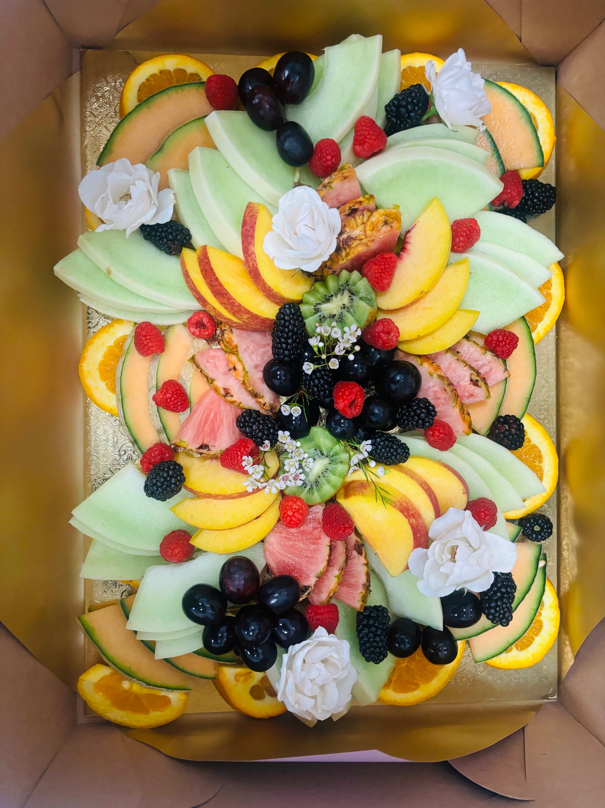 Our Modest size fruit board is the perfect blend of sophistication and savoriness.This assortment of farm fresh seasonal and colorful fruit with a marvelous twist, a wildflower honey drizzle. An exquisite treat for the senses.